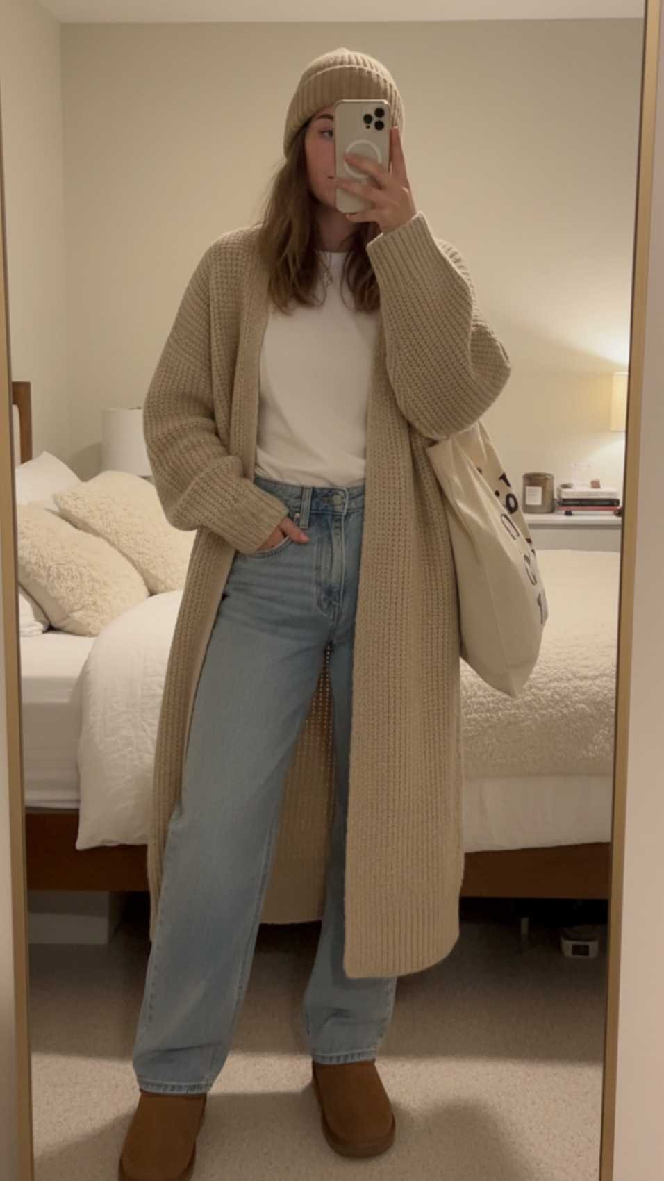 10. Cozy Cardigan + Baggy Jeans + Ugg Boots