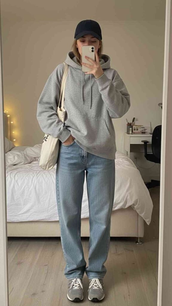 3. Oversized Hoodie + Baggy Jeans + New Balance Sneakers