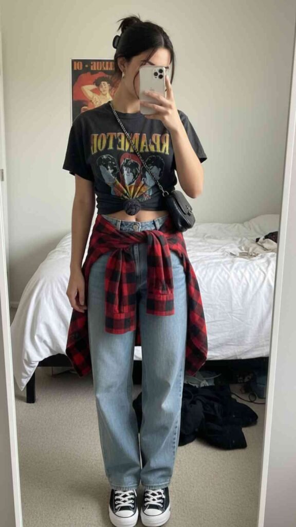 7. Vintage Band Tee + Baggy Jeans + Platform Converse